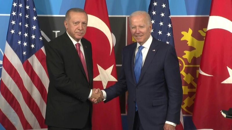 Rencontre entre le président turc Recep Tayyip Erdogan et le président américain Joe Biden à Madrid (AFP)