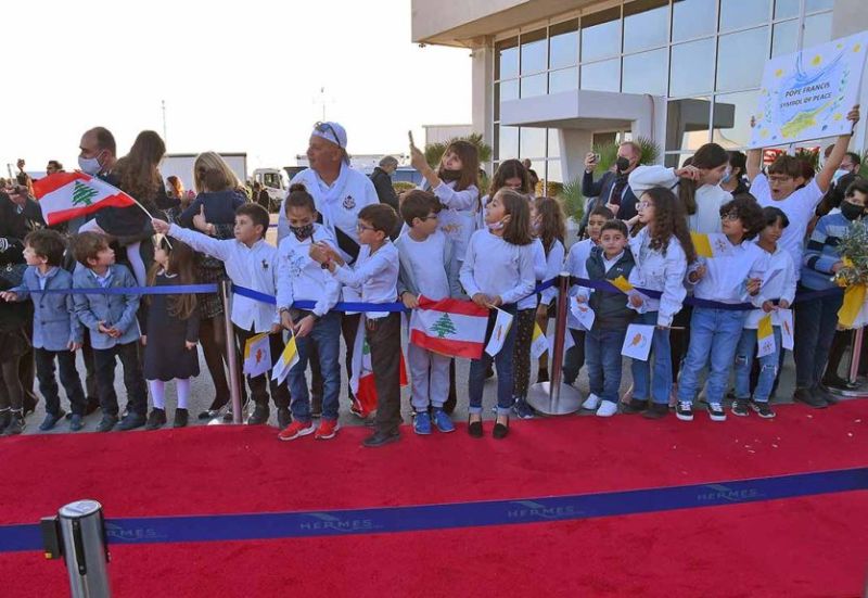«Bienvenue à Chypre!», «Pape François, on vous aime!», a chanté un groupe d'enfants dont l'un portait un drapeau libanais. «Priez pour le Liban!», ont-ils également entonné.