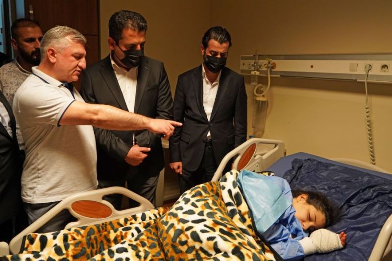 Saman Barzanji, ministre de la Santé de la région autonome du Kurdistan irakien, rend visite aux victimes blessées par des bombardements turcs dans le nord de la région autonome kurde d'Irak, le 20 juillet 2022. (AFP)