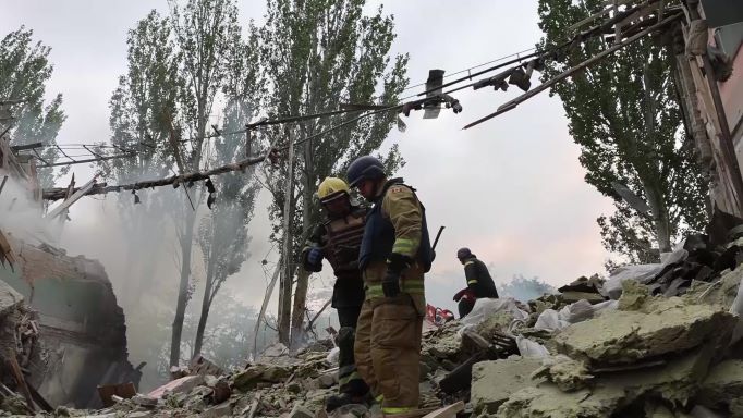 Une frappe nocturne à Mykolaïv, une ville du sud de l'Ukraine qui fait face à une recrudescence des attaques russes, a laissé un grand cratère sur le parvis d'une station de lavage et de réparation de pneus.Kiev a parallèlement affirmé jeudi que les Russes stockaient des armes lourdes et des munitions "à proximité immédiate" d'installations sensibles sur le site de la centrale nucléaire occupée depuis mars de Zaporijjia, la plus grande d'Europe, s'alarmant d'un risque d'explosion accidentelle et d'incendie.
