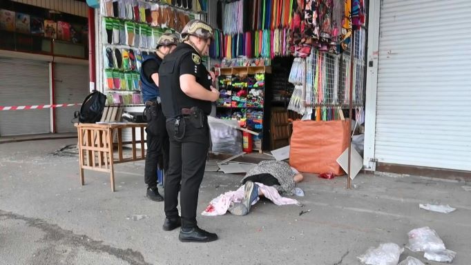 Des membres d'une famille sont en larmes alors que la police ukrainienne examine la lieu de l'attaque qui a tué un homme sur le marché Barabachovo à Kharkiv, l'un des plus grands marchés de vêtements d'Europe de l'Est."Nous saluons l'annonce de cet accord sur le principe, mais ce qui nous importe maintenant c'est (...) de permettre aux céréales ukrainiennes d'atteindre les marchés mondiaux", a commenté la diplomatie américaine.