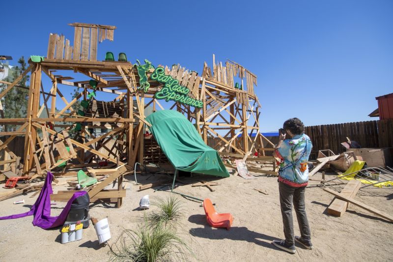 Elle a été réalisée grâce au décor bâti dans Nope pour Jupiter’s Claim, un parc d’attractions fictif sur le thème du western, très présent dans le film. Ce décor a été soigneusement démonté à la fin du tournage dans le désert californien puis transporté à Los Angeles pour être remonté sur le site d’Universal.