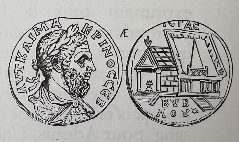 Monnaie frappée sous Macrin, représentant le temple phénicien archaïque.©in Ernest Renan, Mission de Phénicie.