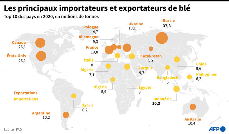 Pour le pain par exemple, 60% du blé consommé en Egypte est importé, quasiment intégralement de Russie et d'Ukraine, deux marchés sévèrement affectés par la guerre. Mais pour le reste, il y a les petits producteurs locaux. "Sans les 40% de blé produits localement", les conséquence de l'invasion russe de l'Ukraine "auraient été bien pires", affirme à l'AFP M. Nour.