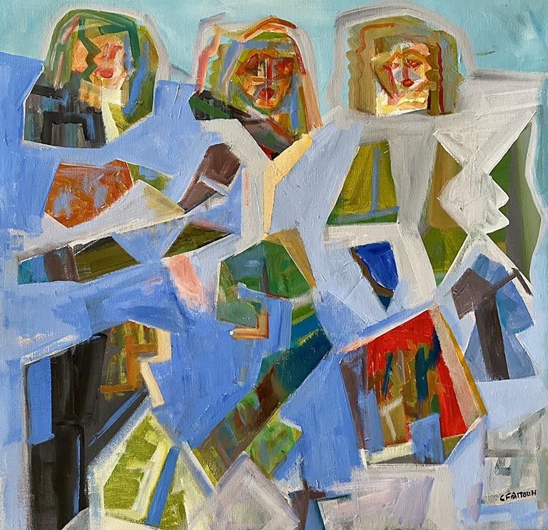 Intitulées Talk (paroles), les peintures de Chucrallah Fattouh mettent en scène des personnages en mouvements, dans un partage incessant de mots lancés en couleurs, pour ouvrir des conversations ou élaborer des discours.