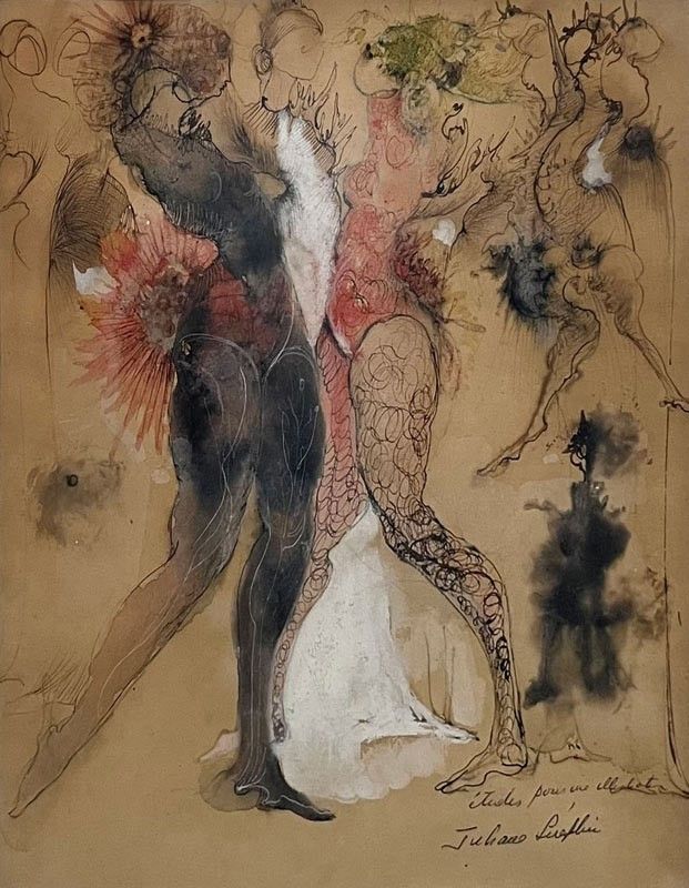 Juliana Séraphim (Palestine, 1934-2005)Études pour une illustration- Watercolor and ink on paper 27x22.5 cm c.1975