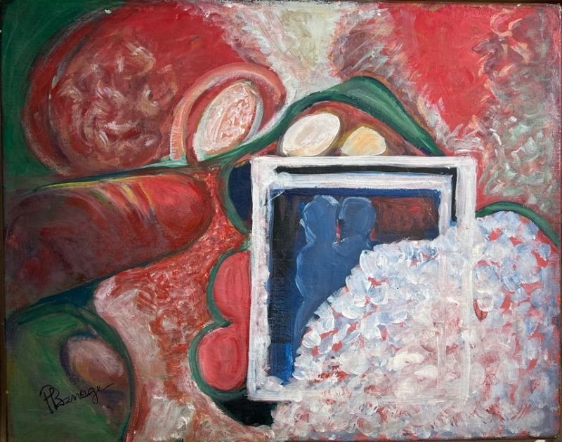 Fadi Barrage, Untitled, Oil on canvas, 33 x 41 cmJuliana Seraphim est née en 1934 à Jaffa, où elle vit jusqu'à la Nakba en 1948, date à laquelle sa famille se réfugie dans un Beyrouth en plein essor culturel. Elle fait partie de la première génération d'artistes palestiniens dont les pratiques ont évolué en exil, sans toutefois aborder les questions relatives à la libération palestinienne, contrairement à ses collègues, réfugiés palestiniens comme elle, plus actifs politiquement à Beyrouth, tandis qu’elle crée de l'art dit «surréaliste» ou «fantastique». Elle commence à peindre en suivant les enseignements de Jean Khalifé, puis s'inscrit à l'Académie libanaise des beaux-arts et poursuit ses études à Florence et à Madrid. Le corps féminin (souvent sexualisé) et sa transformation en fleur est une figure qui réapparaît dans ses peintures et ses dessins à l'encre. Elle renvoie à un univers émotionnel qui lui est propre et dans lequel se met en place une identité du féminin.