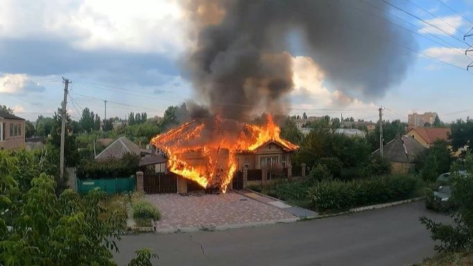 Une maison en feu à Bakhmout, dans le Donbass."Il n'y a aucune différence entre les diplomates russes appelant à l'exécution des prisonniers de guerre ukrainiens et les troupes russes le faisant à Olenivka. Ils sont tous complices de ces crimes de guerre et doivent en être tenus responsables", a de son côté souligné sur Twitter le porte-parole de la diplomatie ukrainienne, Oleg Nikolenko.