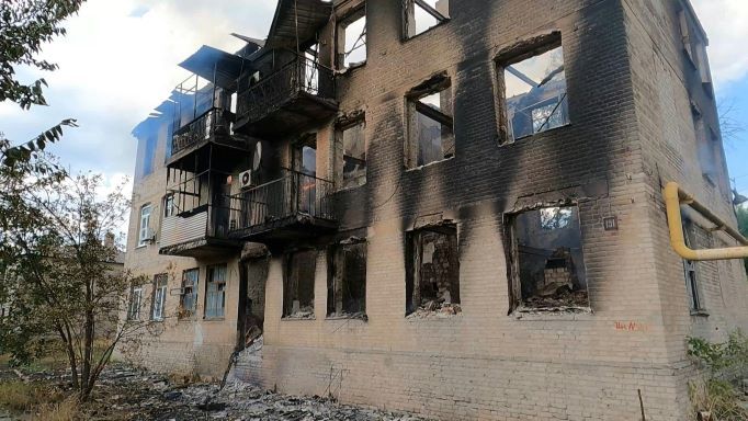 Un immeuble détruit à Soledar, dans le Donbass.Selon le renseignement ukrainien, l'attaque "a été réalisée par des mercenaires de la division Wagner", compagnie russe de mercenaires dont les hommes ont été accusés de crimes en Syrie et en Afrique notamment.