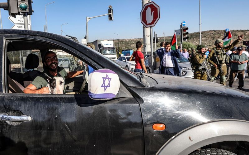 Un colon israélien prenant un ton qui menace face à un photographe lors d'une manifestation contre la colonisation en Cisjordanie. (AFP)Pour sortir de chez lui, Saadat Gharib, 40 ans, doit emprunter un corridor grillagé et passer une lourde porte jaune pourvue de huit caméras, contrôlée à distance par les forces de sécurité israéliennes. En dessous, un tunnel permet aux véhicules militaires d'emprunter une route leur étant réservée.
