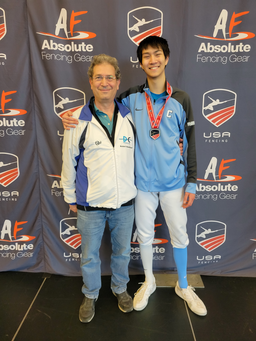Justin avec son maître d'armes de Columbia, Michael Aufrichtig