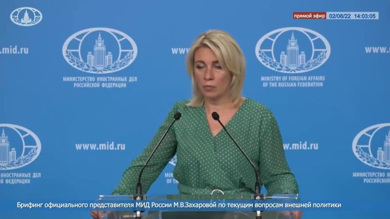 Moscou dénonce la visite à Taïwan de Pelosi, affirmant qu'il s'agit d'une autre "action provocatrice", selon la porte-parole du ministère russe des AE Maria Zakharova.