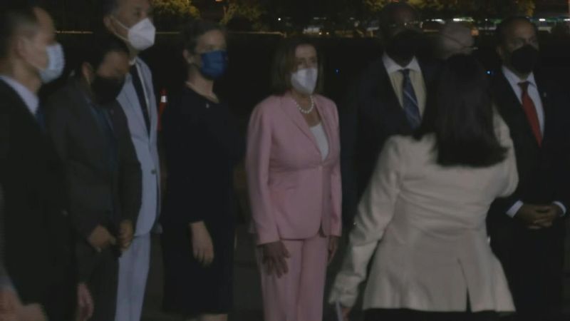 Capture d'écran montrant l'arrivée de Nancy Pelosi à l'aéroport de TaipeiElle a par ailleurs estimé que sa venue ne contrevenait "d'aucune façon" à la politique de longue date des Etats-Unis vis-à-vis de la Chine.