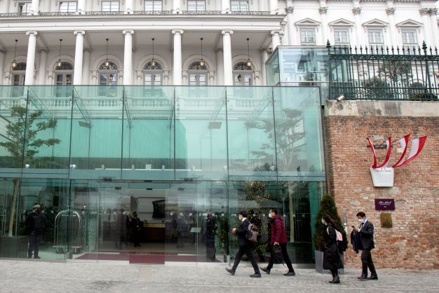 Le Palais Cobourg, un hôtel de luxe où se déroulent les pourparlers sous l'égide du coordinateur de l'Union européenne Enrique Mora.