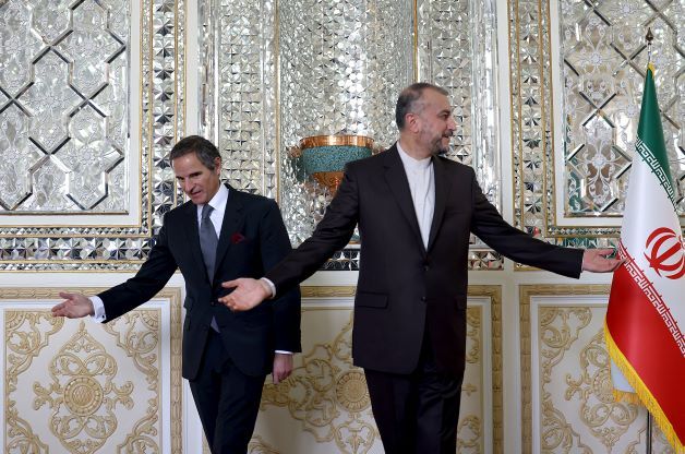Le patron de l'AIEA Rafael Grossi (droite) et le chef de la diplomatie iranienne Hossein Amir-Abdollahian lors d'une rencontre à Téhéran.
