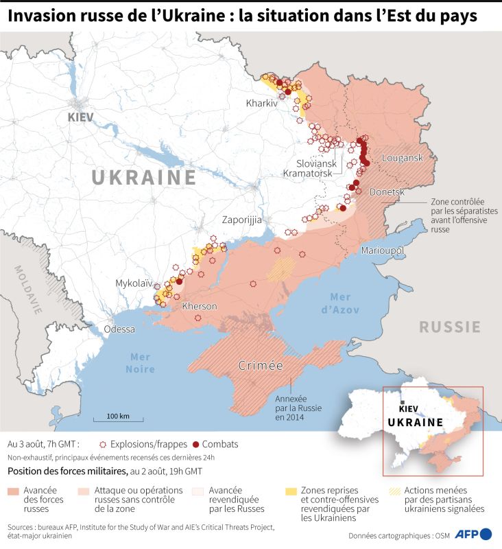 Les forces ukrainiennes mènent de leur côté une contre-offensive dans le sud du pays, où elles affirment avoir repris plus de 50 villages contrôlés par Moscou.