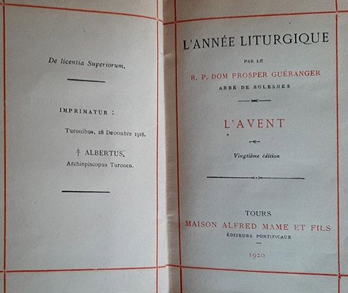 Dom Prosper Gueranger, O.S.B, abbé de Solesmes. L’Année liturgique. Vingtième édition. Tours, 1920, Mame et fils, 15 volumes, in-16.
