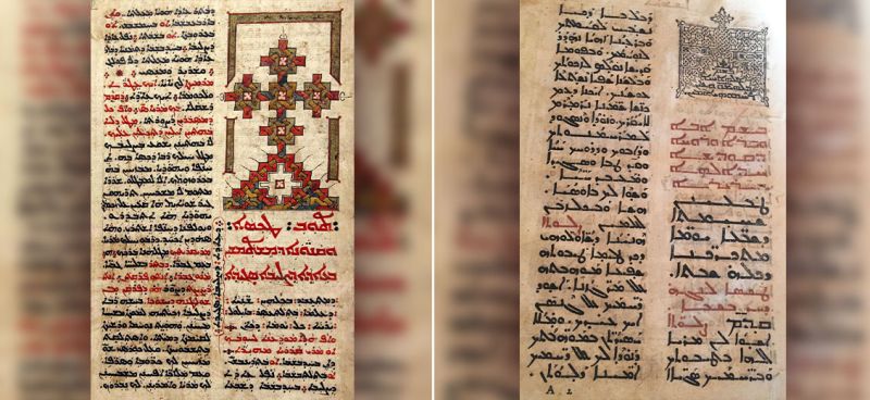 À gauche : Manuscrit assyro-chaldéen de la fête de la Croix. À droite : Chhimto (livre des prières ordinaires) maronite.