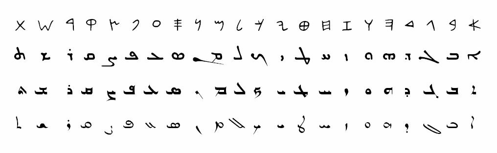 Le phénicien et les 3 graphies syriaques : estranguélo, madenhaya, serto.