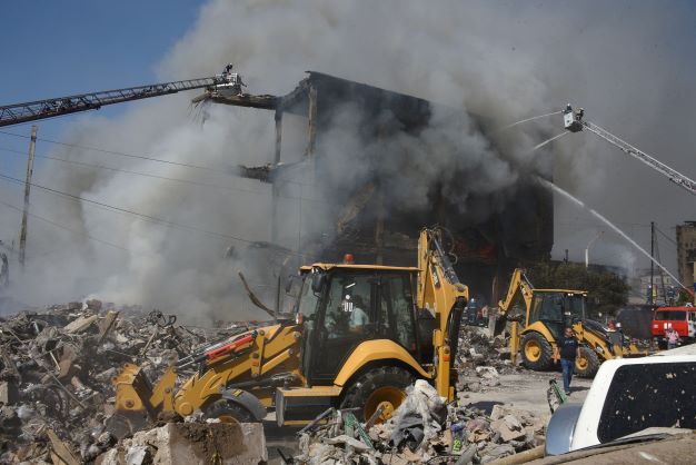 Dix rescapés ont été extirpés des ruines par les secouristes, ainsi qu'un corps, a indiqué le ministère des situations d'urgence. De nombreux volontaires étaient également présents, s'échinant à déplacer à la main des amas de blocs de béton et de barres métalliques tordues. Non loin, des pompiers équipés de lances à eau, certains perchés sur des échelles, arrosaient abondamment les ruines fumantes d'un immeuble à la façade noircie par les flammes.