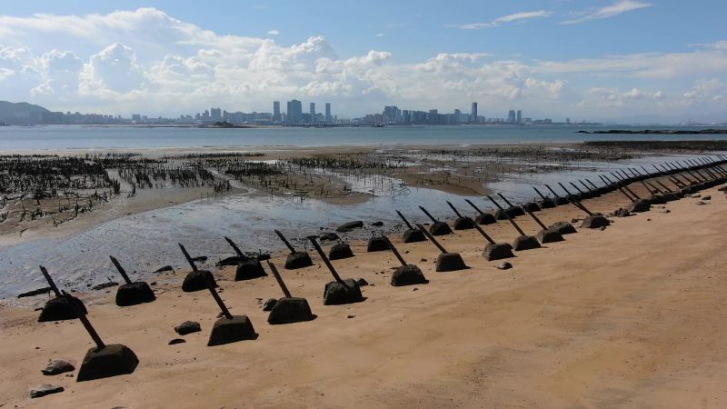 Images de chars rouillés et de piques anti-débarquement qui parsèment les plages des îles taïwanaises de Kinmen qui se trouvent tout juste face au littoral de la Chine continentale. (AFP)