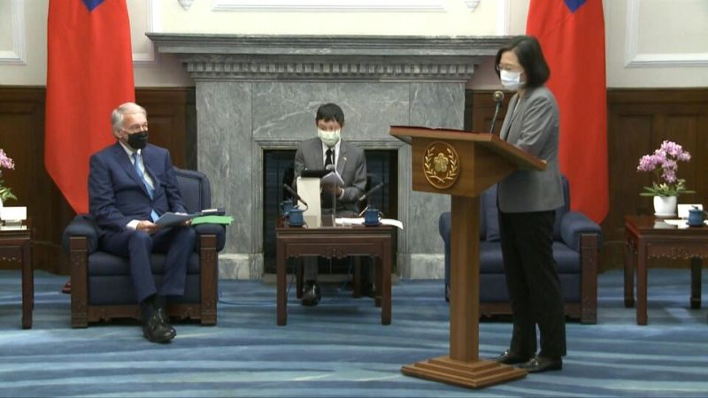Des parlementaires américains lors d'une récente rencontre avec la présidente taïwanaise Tsai Ing-wen à Taipei (AFP)