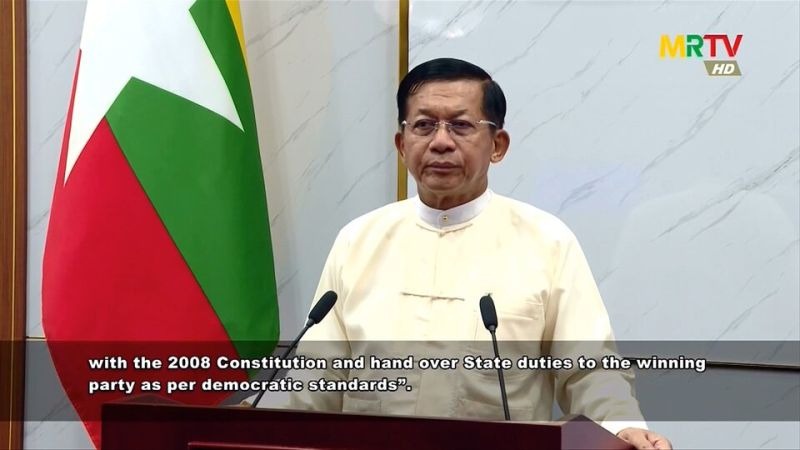 Le chef de la junte birmane Min Aung Hlaing a promis la tenue d'élections "d'ici août 2023" (AFP)L'armée au pouvoir, elle, défend son projet d'organiser des élections à l'été 2023. Les Etats-Unis ont déjà rejeté ce "simulacre" d'élections qui ne peuvent être "ni libres ni justes dans les conditions actuelles", selon le secrétaire d'Etat Antony Blinken.