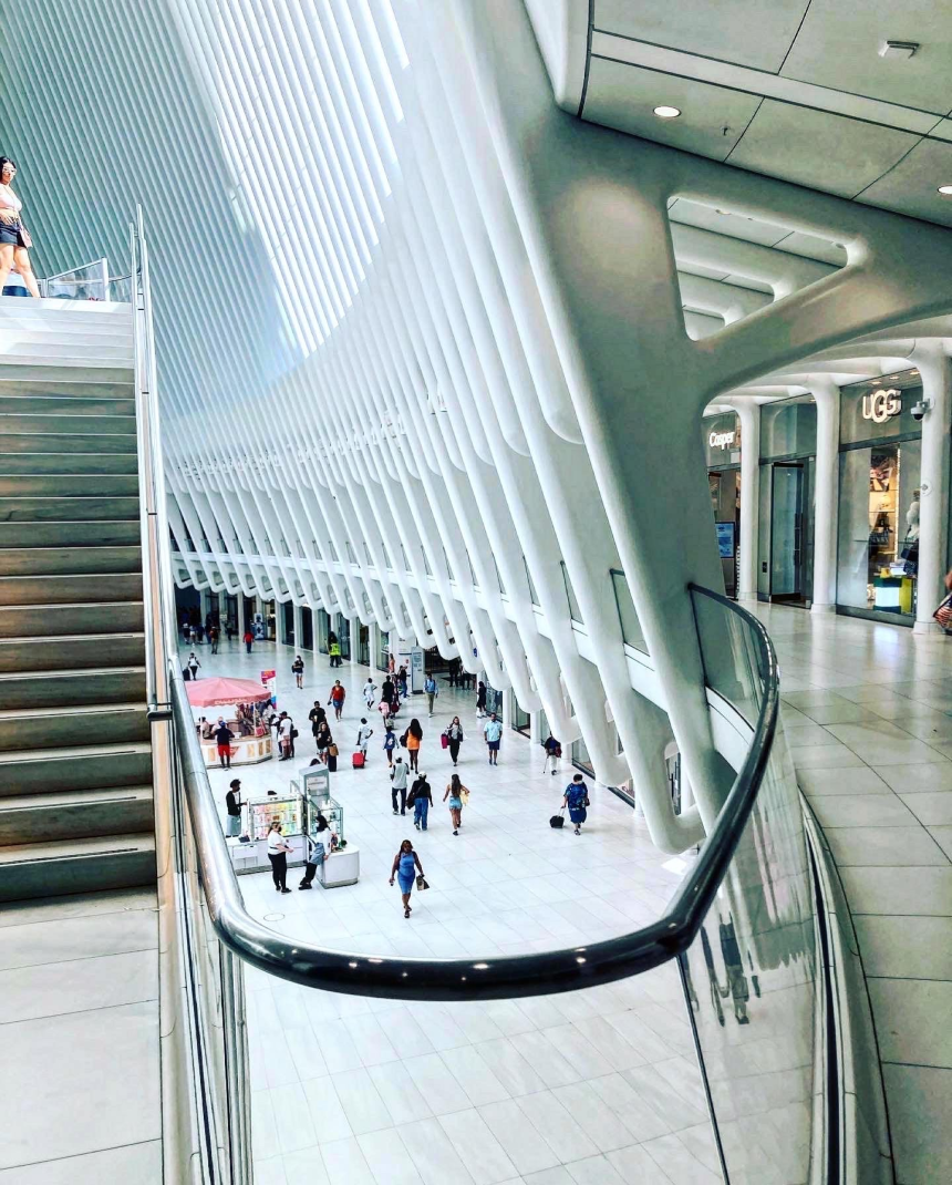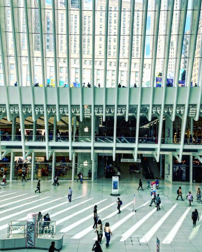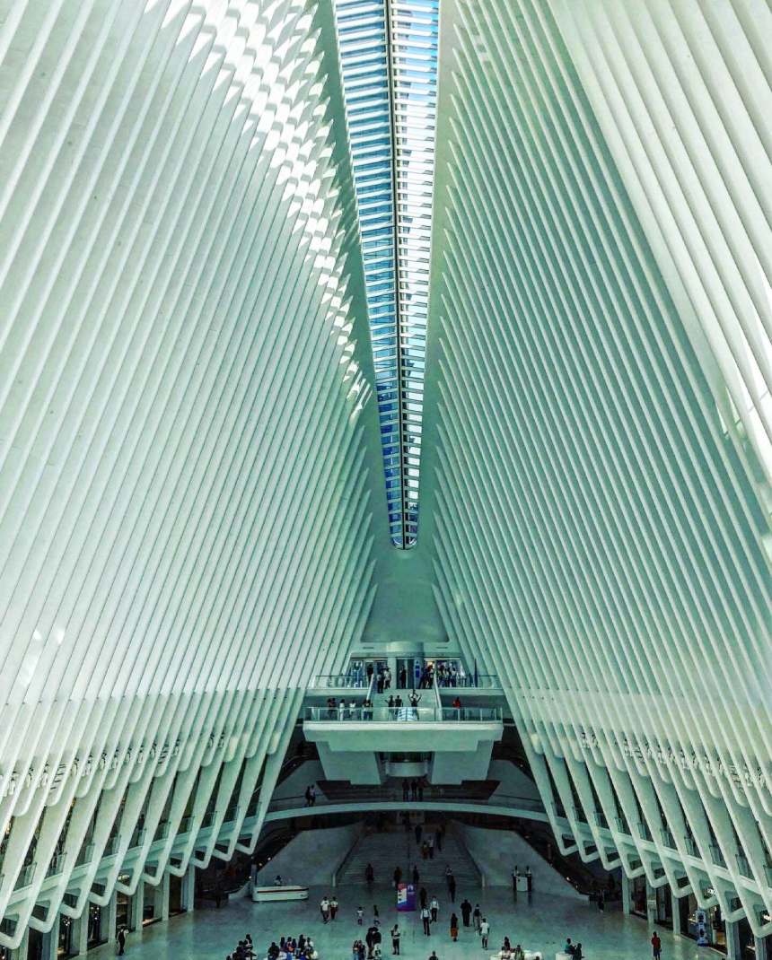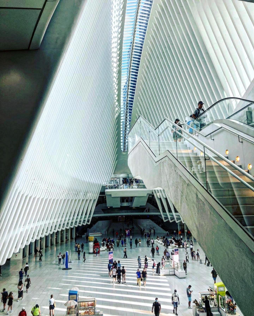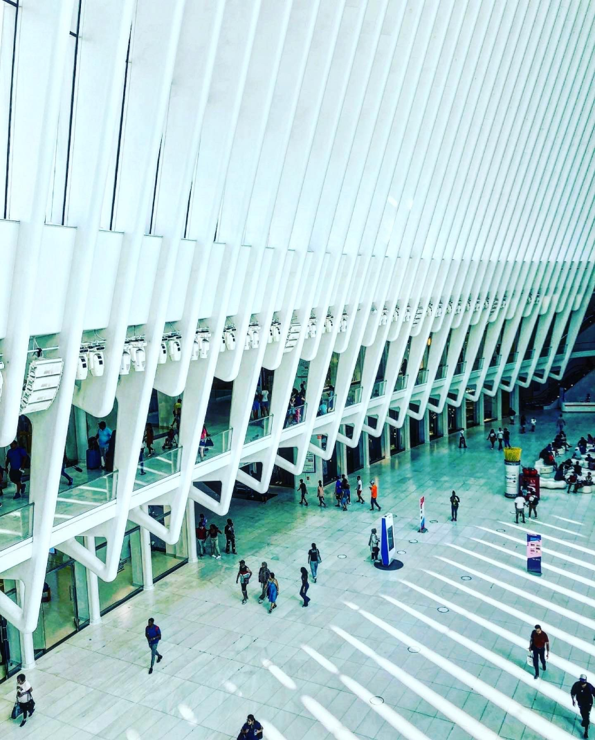 L’époustouflante bâtisse a été dessinée par l’architecte espagnol Santiago Calatrava @calatravaofficial. Cette architecture a été conçue pour remplacer l’ancienne gare qui a été détruite durant l’attentat du 11 septembre, se situant à côté des ex-tours jumelles. Projet lancé en 2004, inauguré en 2016, il aurait coûté 4 milliards de dollars!