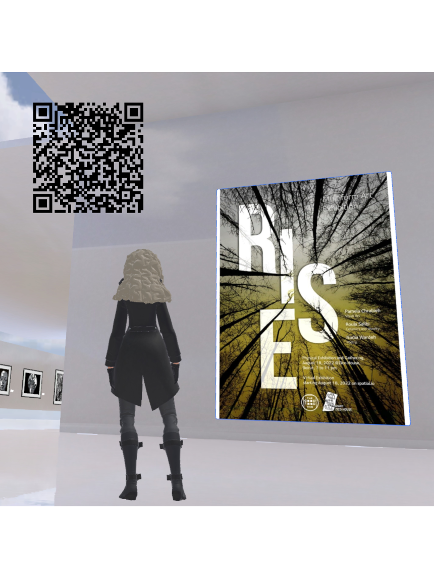 Rise est une exposition hybride – physique et virtuelle – d’art multiforme. Elle est née d'une collaboration entre Pamela Chrabieh, Roula Salibi et Nadia Wardeh, accompagnées par le groupe Minal Shaab, qui ont mis en commun leurs divers talents artistiques afin de créer un moment artistique ouvert au public. L’exposition, sponsorisée par The Good Food Hub/Zico House, a eu lieu au Zico House Beyrouth le 18 août. Elle se poursuit en virtuel jusqu’au 15 septembre sur la plateforme spatial.io. Les internautes amateurs/trices d’art peuvent la visiter avec leurs avatars.