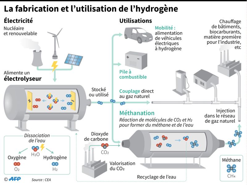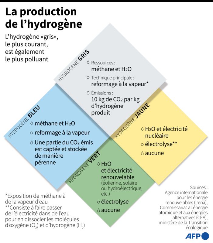 Par ailleurs, l'hydrogène n'est pas forcément décarbonné : seul l' «hydrogène vert», fabriqué à l'aide d'énergies renouvelables, est considéré comme durable par les experts.