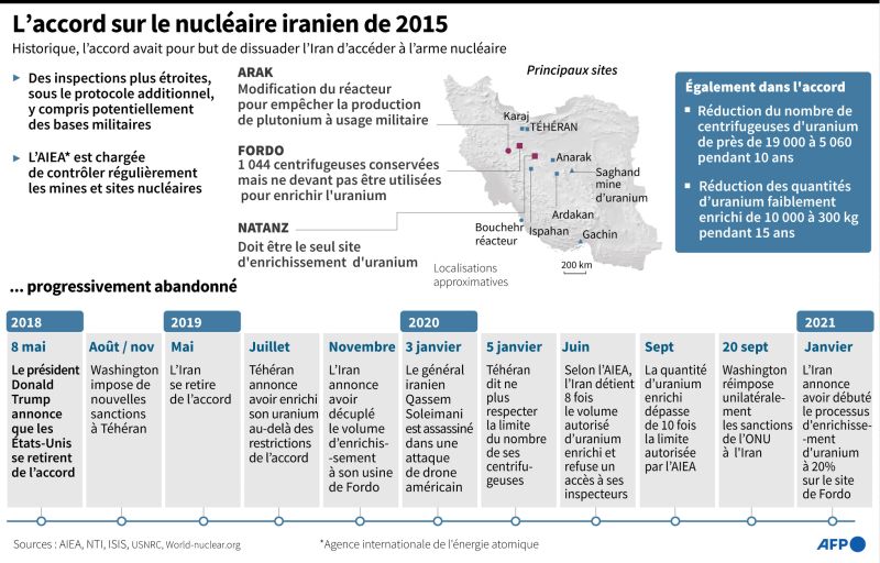 Ennemi numéro 1 de l'Iran, Israël s'était félicité du désengagement, en 2018, des États-Unis de Donald Trump de l'accord international sur le nucléaire iranien (JCPOA), mais craint ces jours-ci un renouvellement du pacte à l'heure où les pourparlers semblent s'accélérer.