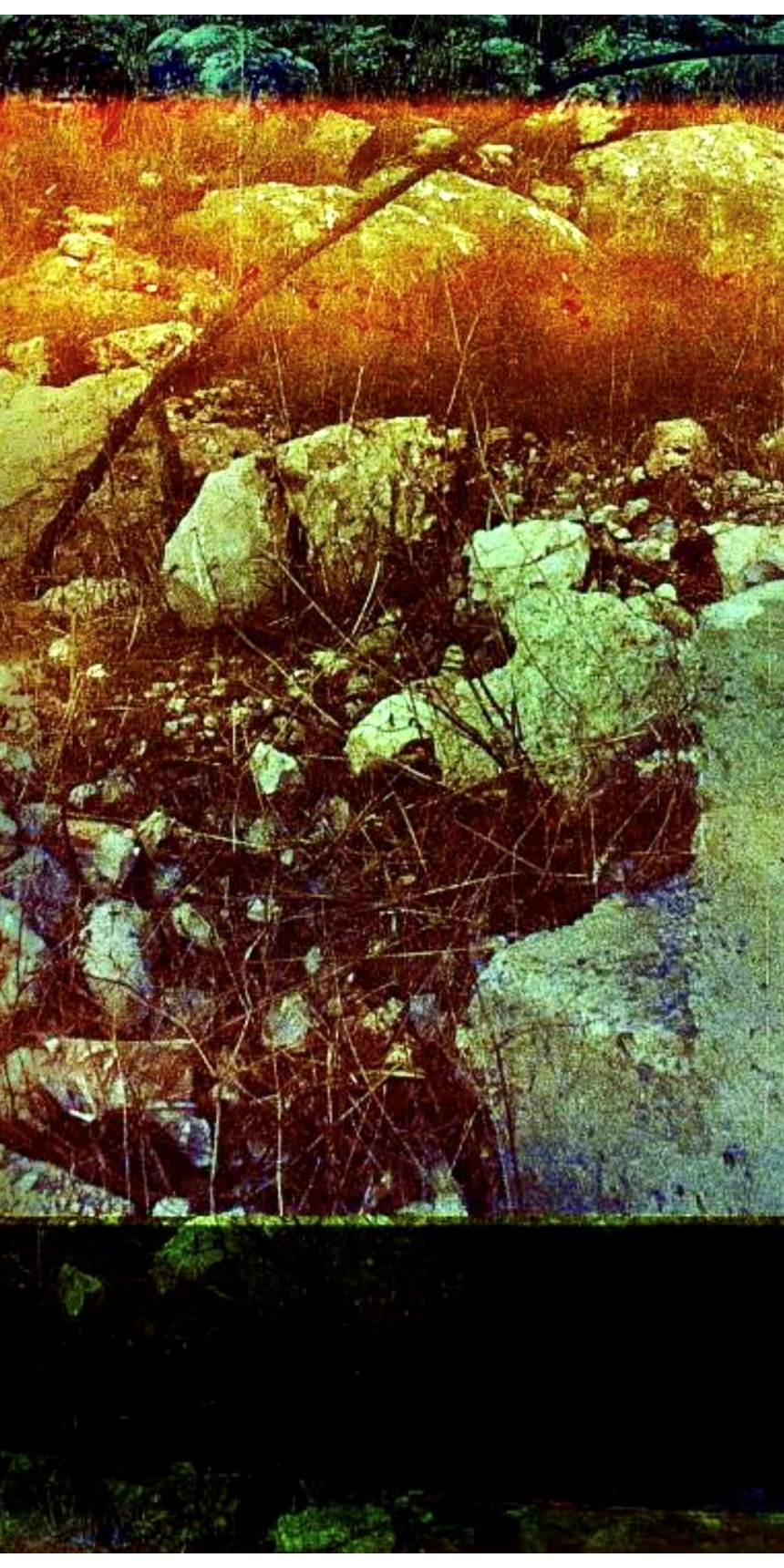 Pour développer et mettre en place son installation à base de pellicules périmées, l’artiste photographie les sols, les roches, les vallées et les herbes, les monticules qui recouvrent les failles souterraines, ces «lignes de blessure de la terre», comme le dit si bien l’écrivaine Ryoko Sekiguchi – qui a signé avec le réalisateur Jean-Michel Vecchiet les textes du livre éponyme qui accompagne l’exposition de Cattaruzza.