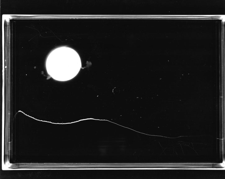 A Thousand Suns in the Dark est une recherche optique sur l’obscurité qui révèle une certaine manière de voir propre à l’espace libanais. Elle offre un travail qui a été complètement produit dans l’obscurité à travers un processus sans caméra. Si la photographie présuppose la médiation de la lumière, dans ce travail, c’est précisément son absence qui devient un moyen de créer des images.