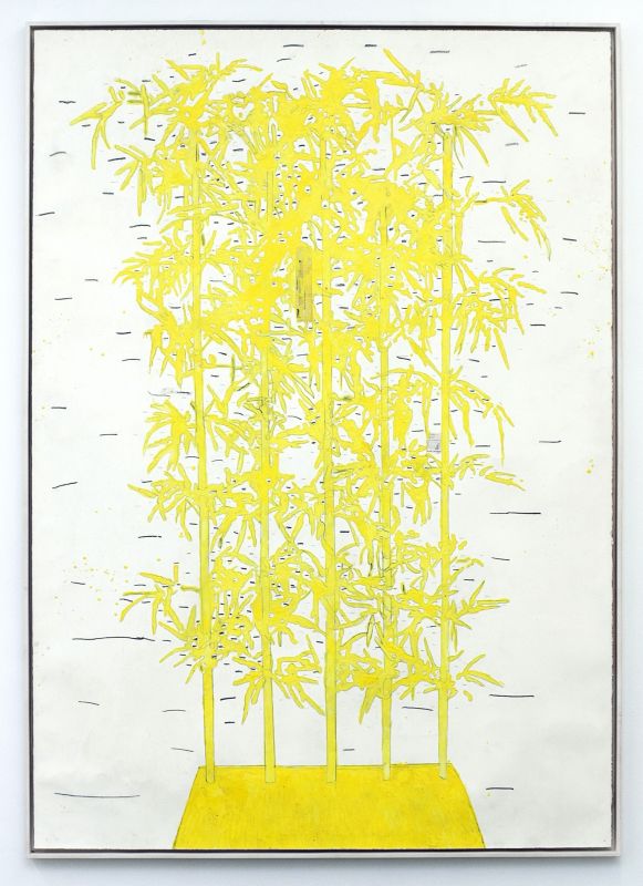 La série en jaune fluorescent des plantes de bambou en plastique imite, elle, la typologie des planches botaniques, sauf que les plantes dont il est fait usage sont artificielles. Elles font référence à la surproduction d’objets artificiels qui menace la terre, tout en reflétant, aussi, notre désir de nature, même dans ses manifestations les plus aliénées.
