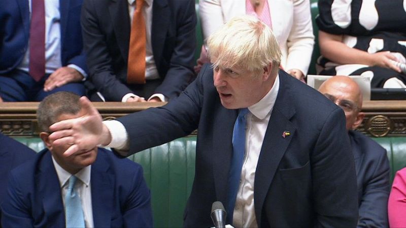 Lors de son dernier discours au Parlement britannique, Boris Johnson s'était fendu d'un "hasta la vista" , laissant augurer un potentiel retour en politique. (AFP)Le Telegraph a depuis pris ses distances mais le Daily Mail, tabloid fidèle au Premier ministre, lui aurait proposé d'écrire une chronique quand il quittera Downing Street.