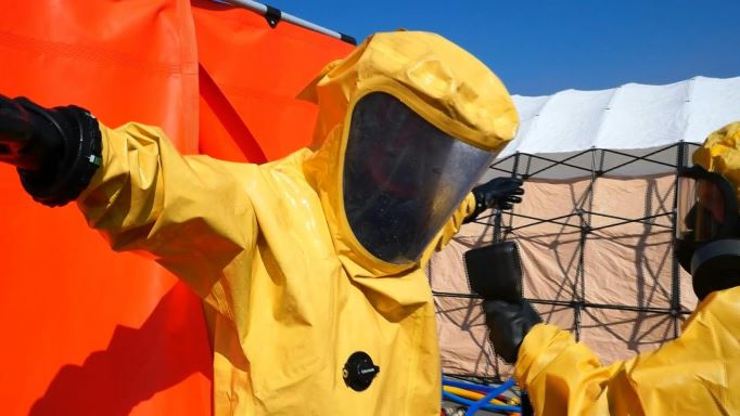Les services de secours ukrainiens participent à une formation sur la gestion du risque d'accident nucléaire, y compris la désactivation de la poussière de radiation.