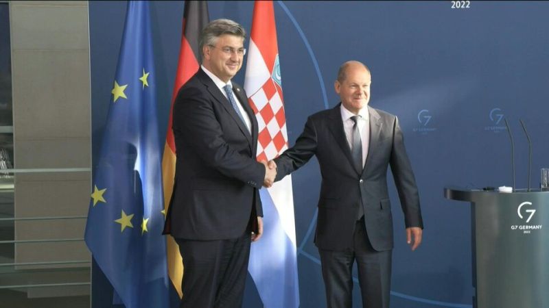 Le chancelier allemand Olaf Scholz et le Premier ministre croate Andrej Plenkovic à Berlin (AFP)Dans cette future configuration, les règles de fonctionnement devront forcément évoluer, selon le chancelier.
