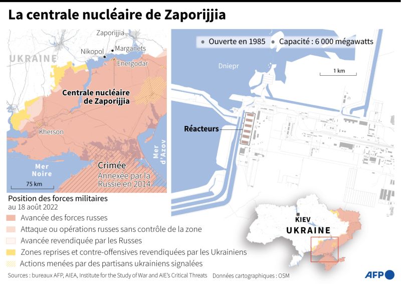 Le même jour, les autorités ukrainiennes ont assuré que la Russie effectuait des tirs d'artillerie sur Energodar, la ville où se trouve le complexe atomique de Zaporijjia, et sur la route que devaient emprunter les inspecteurs de l'AIEA pour s'y rendre.