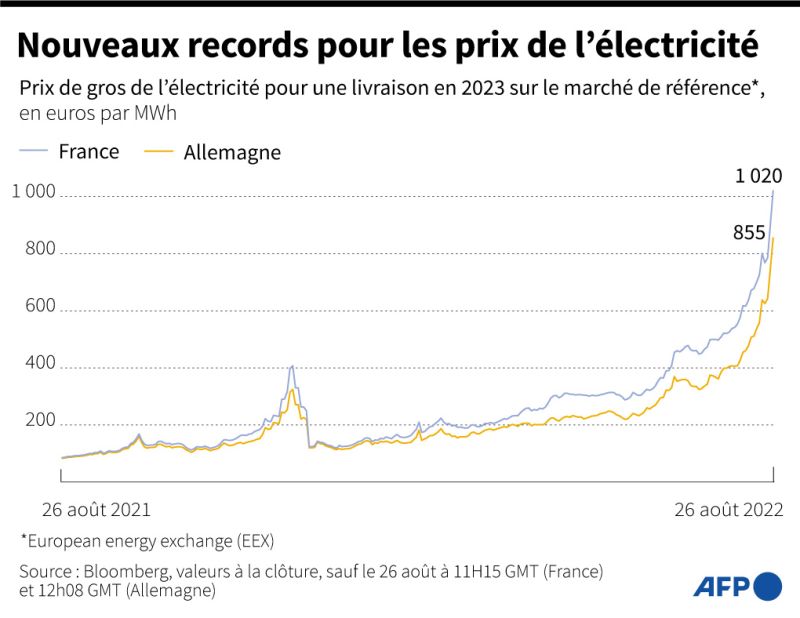Alors que les ménages sont protégés par un plafond tarifaire imposé par les pouvoirs publics, qui doit toutefois augmenter de 80% en octobre, rien n'existe pour les entreprises et les établissements publics.