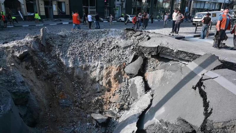 Un missile russe explose dans le centre de Kharkiv (AFP)Selon les autorités ukrainiennes, trois civils ont été tués dimanche dans la région de Donetsk (est) et une femme lundi dans celle de Dnipropetrovsk (centre).