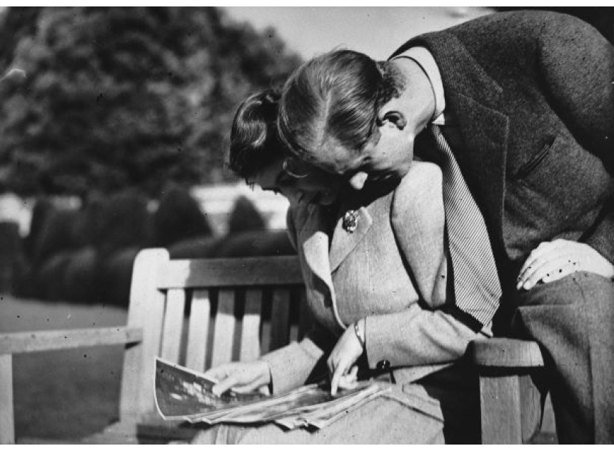 Éperdument amoureuse de son cousin, Philip de Grèce, elle l'épouse le 20 novembre 1947 à l'abbaye de Westminster. Les noces ont lieu juste après la guerre. La petite histoire dit que la reine avait accumulé les coupons de tissu rationnés pour sa robe de mariée.