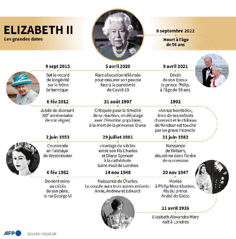 Au cours de sept décennies de règne, elle a traversé la Seconde Guerre mondiale, vu la dissolution de l'Empire britannique et connu 15 Premiers ministres, tout en incarnant la stabilité de l'État.