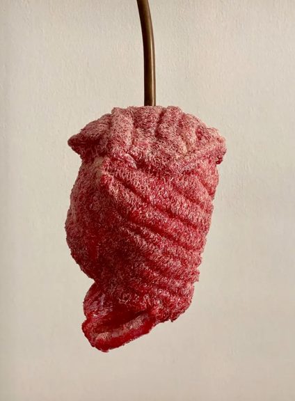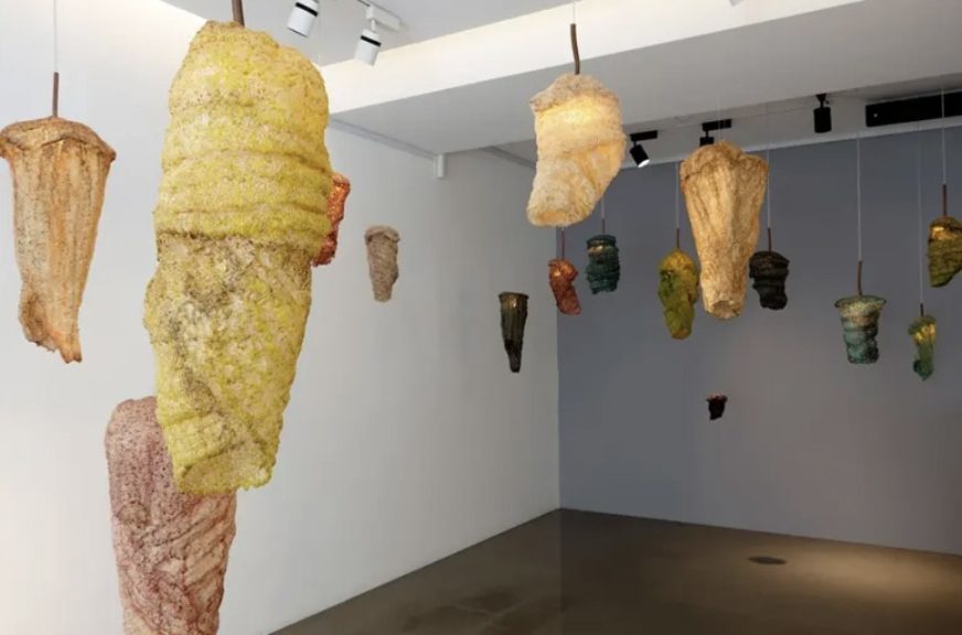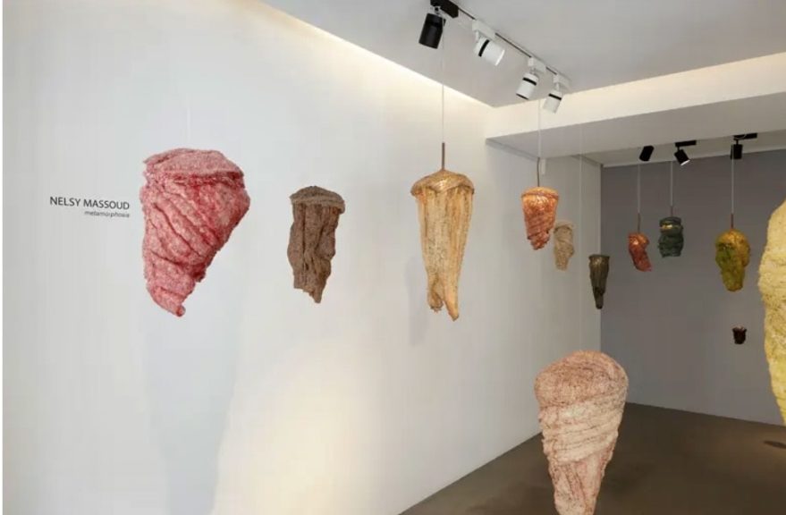 Le succès ne tarde pas. Du 3 juin au 23 juillet 2022, Metamorphosis de Nelsy Massoud dialogue avec l’exposition "Yearning" de sa fidèle complice Azza Abo Rebieh à la galerie Saleh Barakat. Dans la lignée du travail d’Yves Klein, la sculptrice explore ici la couleur et la lumière d’un support inédit : le loffah, élément phare du patrimoine artisanal local. Celui-ci semblable à une chenille est délicatement peint. La truculente artiste fait ouvertement appel à l’évolution perpétuelle touchant chaque être vivant. Sa structure célèbre l’existence dans un rapport optimiste au présent. L’œuvre, très évocatrice de l'univers vivant et minéral, jouit de l’effet de suspension qui permet le mouvement spontané des éléments. L’installation poétique consacre avec justesse la métaphore de vie, Nelsy Massoud étant sans doute la poétesse des matériaux. Elle incarne littéralement son message en tenant le spectateur par la main et l’invitant à se réinventer à son tour. Le travail présenté s’impose comme un vecteur d’imprégnation, facilitant la transmission visuelle et émotionnelle. La couleur est aussi un élément participant à la dimension aérienne en ayant recours à des tonalités organiques.