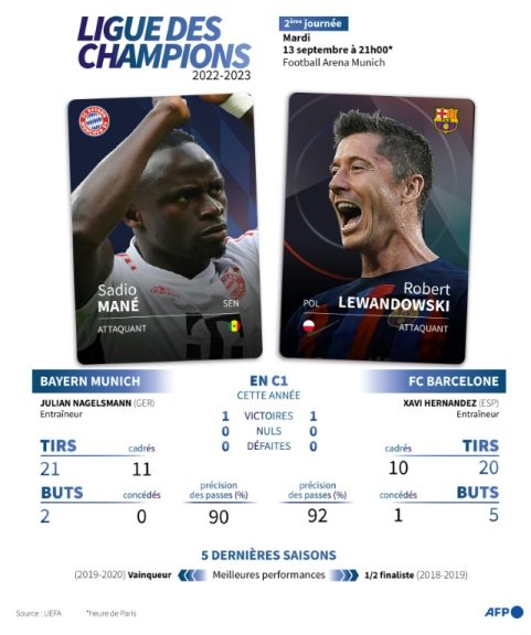 Adulé pendant huit ans au Bayern, Robert Lewandowski revient mardi (22h00, Beyrouth) à Munich en porte-étendard d'un FC Barcelone transformé qui rêve de venger ses récentes désillusions face aux Bavarois et d'afficher ses nouvelles ambitions en Ligue des champions.
