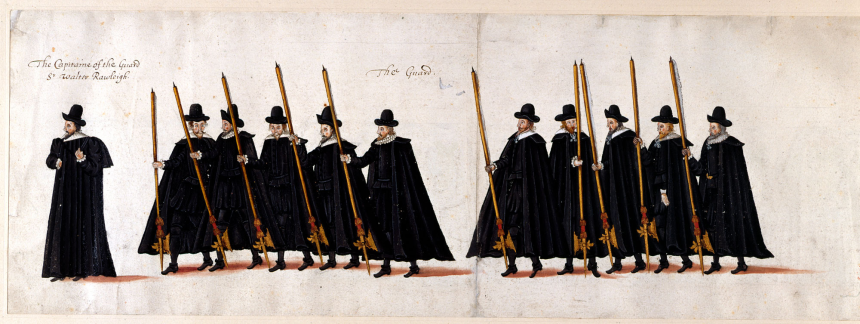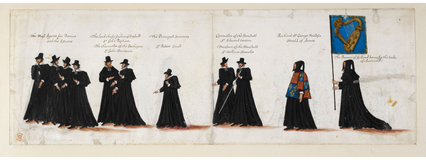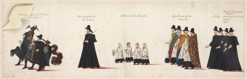 Les quatre choristes et les quatre gentilshommes lors du cortège funèbre d'Elizabeth I en 1603, © British LibraryGrande magnificence