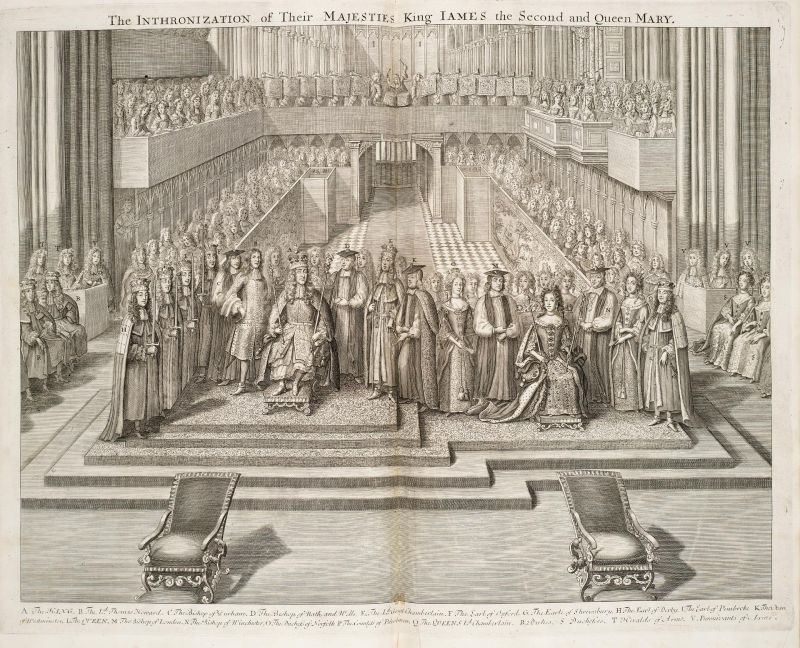 Les funérailles du roi Charles II, en 1685, furent les dernières cérémonies funèbres royales (ou nationales) notables des neuf années suivantes. Son successeur immédiat, le roi Jacques II, s'était exilé pendant la "Glorieuse Révolution" de 1688-1689 ; aucune cérémonie religieuse royale en Angleterre n’avait donc été organisée à sa mémoire. En effet, le nouveau monarque, converti au catholicisme, ne cachait nullement sa volonté d’établir une monarchie absolutiste à l’image de celle instaurée par son cousin germain, le roi Louis XIV de France (1638-1715), et d’institutionnaliser son autocratie en affaiblissant le Parlement de Westminster. Le despotisme du souverain, et la possibilité de l’établissement d’une dynastie catholique sur le trône anglais, avaient aussitôt mis la poudre au feu, déclenchant ainsi le processus qui allait aboutir à ladite révolution et à l’exil du roi. Il mourut le 16 septembre 1701 en France et fut inhumé dans la chapelle Saint-Edmond de l'église bénédictine à Paris. Marie II Stuart (1662-1694) et son mari Guillaume III (1650-1702) avaient ainsi été couronnés conjointement souverains d'Angleterre, le 11 avril 1689.