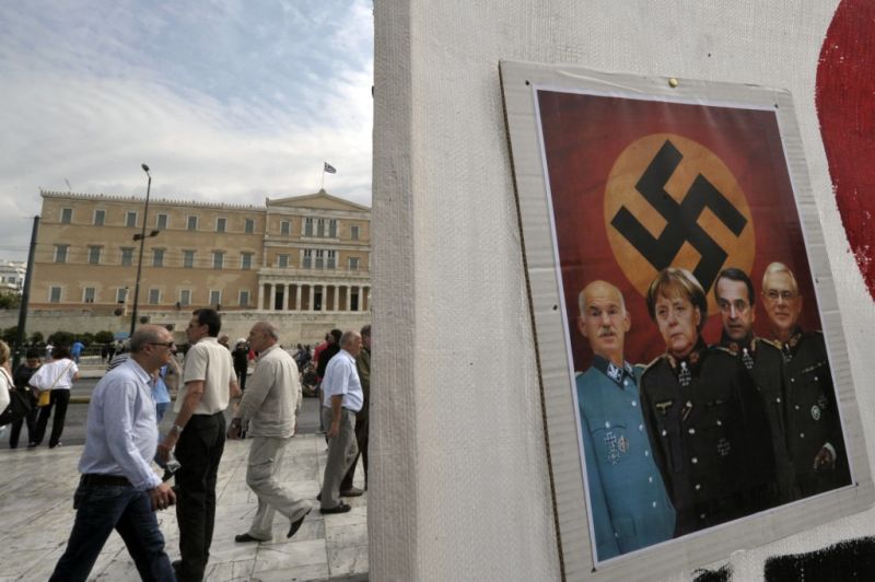 L'ère Merkel est aussi marquée par la crise économique grecque, dont le point de départ était la crise de 2008 avant d'atteindre un pic en 2010 avec la crise de la dette. La chancelière, qui avait exigé des conditions très strictes à Athènes en échange des aides européennes, a provoqué une animosité tenace chez les Grecs en particulier, et dans d'autres pays européens également. Cette photo prise lors d'une manifestation à Athènes en 2013 en dit long sur la réputation de Merkel dans ce pays. (AFP)"Merkélisme"