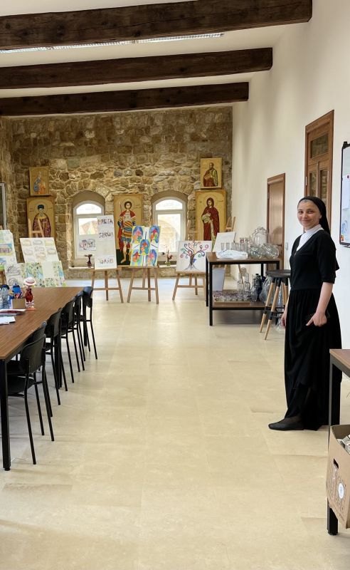 Sœur Marana dans l’atelier de peinture. ©Amine Jules Iskandar