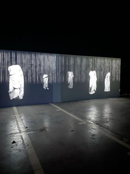 Créée spécialement pour cette exposition, une double installation du duo Joana Hadjithomas et Khalil Joreige clôture le parcours. 14 écrans disposés en cercle montrent les images tirées des caméras de surveillance du Musée Sursock quelques secondes avant, pendant et après l’impact de l’explosion du 4 août ou comment la violence pourrait pulvériser l’art et l’activité artistique. Secoué, le spectateur découvre ensuite leur installation suivante But my head is still singing qui retranscrit sur un écran éclaté le chant d’Orphée, le musicien au destin tragique dont la tête décapitée et jetée à la mer continue de chanter… On les retrouvera également aux Usines Fagor avec une autre installation vidéo Where is my mind? composée à partir d’images prises dans divers musées et représentant des statues antiques ayant perdu leur tête et qui, dans un mouvement de va-et-vient, semblent hantées par des vers murmurés du poète grec Georges Seféris.