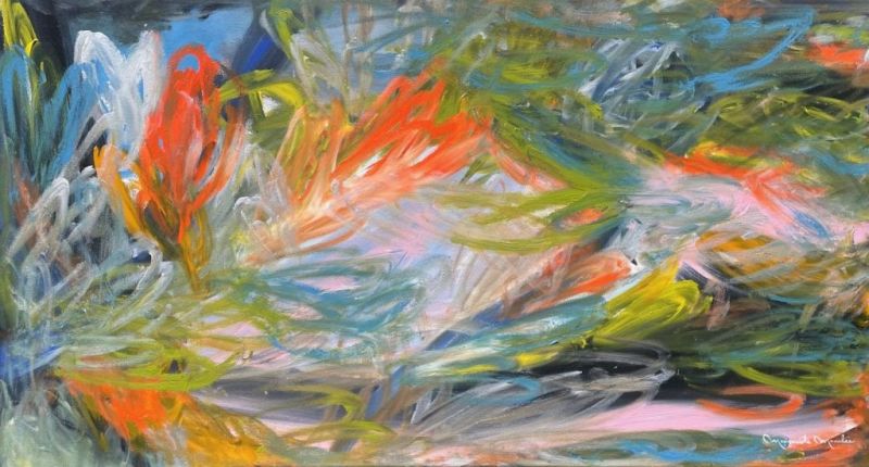 Les tableaux aux contours flous et embrumés, nimbés de lumière sont une invitation à la contemplation mystique et à la prière. La toile devient alors un espace d’intériorité et de mystère, un espace de méditation et de lâcher-prise où l’artiste nous incite, dans un abandon total à la toile, à nous laisser envahir par l’émotion, à ressentir les palpitations de la nature, ses parfums, ses senteurs et ses couleurs. L’artiste nous emporte alors dans un tourbillon d’arcs-en-ciel, nous happe dans un halo de faisceaux lumineux pour une expérience sensorielle inégalée.
